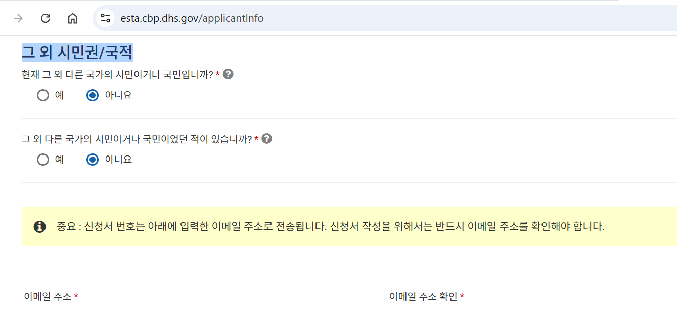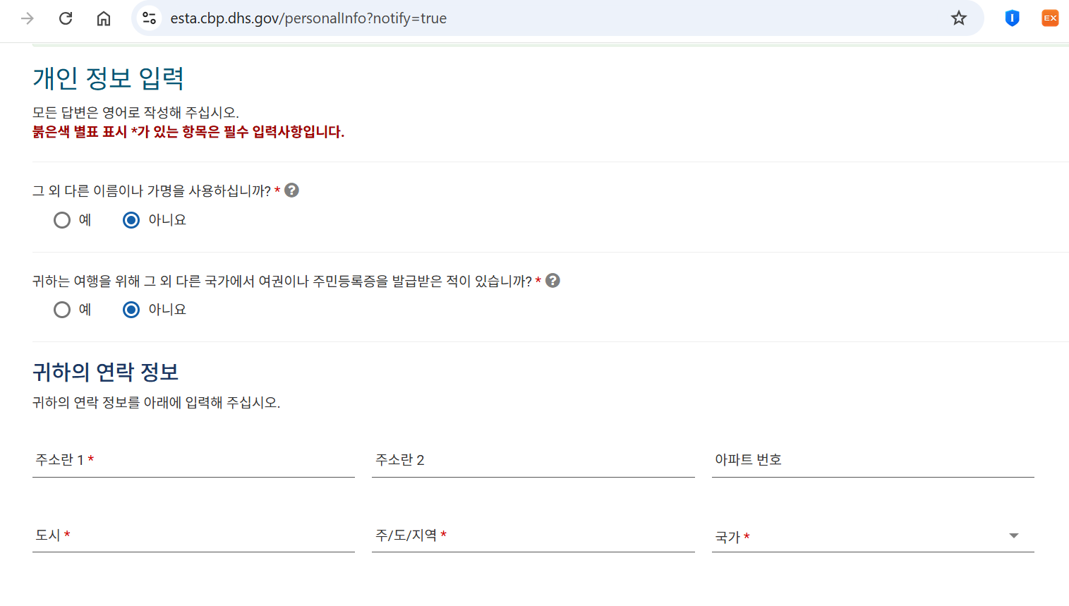 10. 미국에 체류하는 동안 머무를 주소 & 미국 내 혹은 해외에 있을 비상 연락인
